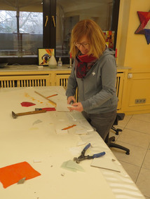Zu Besuch waren zunächst die Auftraggeber für ein Fliesen-Wandmosaik im Eingangsbereich einer Schule: