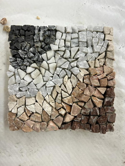 Das großartige vielfältige Naturstein- und Smalten Material in den Lagern der Mosaikbauschule ermöglicht zudem eine variantenreiche Arbeitsweise.